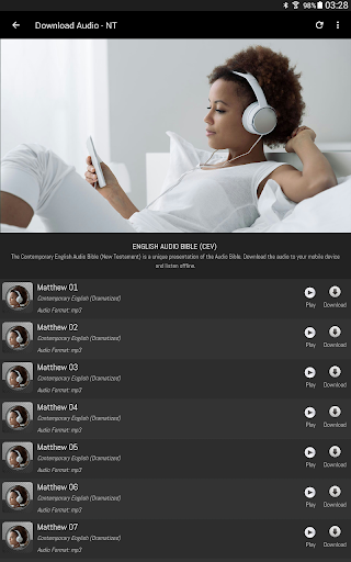 The English Audio Bible (Contemporary English Version - Old and New Testament Audio Drama) was developed to help users listen to the word of God in English language anywhere and any time using their android mobile devices.