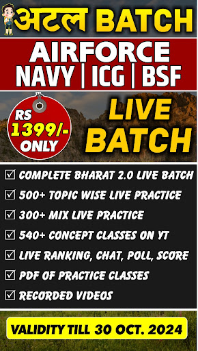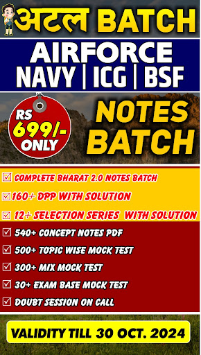 To enhance your preparation, we offer comprehensive mock tests, Concept notes online live classes through our Air Force Group X Exam, Air Force Y Group Exam, Navy Exam, ICG (Indian Coast Guard), Army Exam, NDA Exam, CDS Exam, AFCAT Exam, SSC CPO Exam, SSC CGL Exam, SSC CHSL Exam, SSC MTS Exam, SSC GD Exam, and various state-level exams. Our Online Mock Tests App provides you with a wide range of free and paid mock test series, keeping you well-prepared and acquainted with the latest exam patterns.
