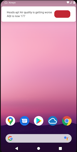 Airwyn lets you monitor a single public PurpleAir sensor or US EPA (AirNow) sensor. You can get ongoing silent notifications, or choose to get an audible alert when air quality index (AQI) goes up or down. This can let you make important decisions for your safety and health -- like when to go inside, and when to open or close windows.