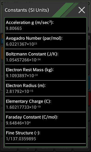 - Physical and mathematical constants.