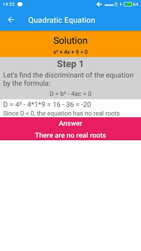 Quadratic equation. Free quadratic formula solver via discriminant. It helps you to find roots of quadratic equation by quadratic formula.