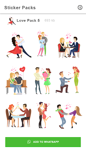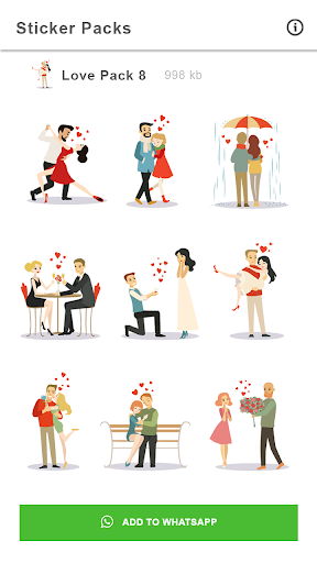 We offer stickers packs for all types of love, Romance so you can choose the one you like most. WAStickerApps: couple, love stickers for whatsapp