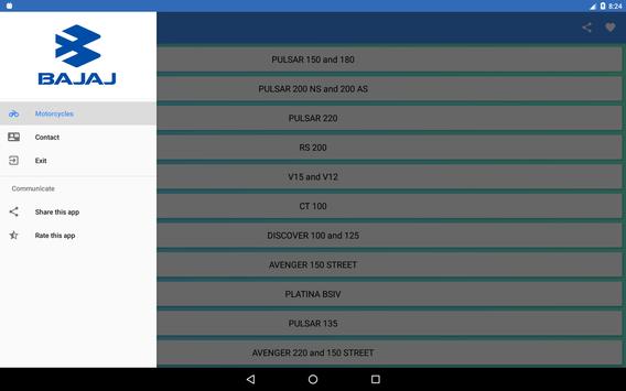 This application contains a collection of owner's manuals for Bajaj motorcycles. This app is aimed at providing the customers of Bajaj with easy access to their motorcycle's owner's manual.