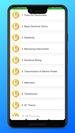 # QUIZ :- in this ITI electrician app also available quizzes based on chapter not a number of question you can start quiz by select chapter name . dynamic ally every time question will changing