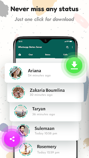 2. After you are done with the first step, open this app it will automatically scan all the status from your contact list of your WhatsApp and will give you options like "share" "download" etc, click on the download button given just below the status.