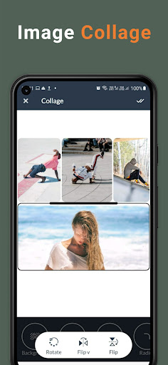 Collage Features -> You can add up to 9 images in this collage app. You can select the single image inside the collage you can flip, rotate images in the collage. You can also add a background color in the created collage.