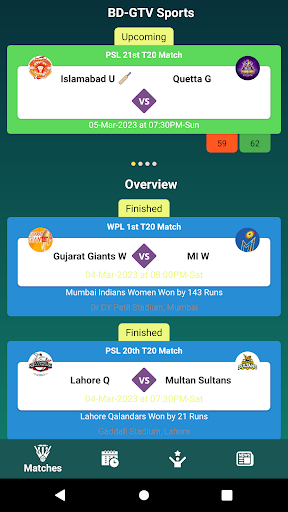 BD-GTV Sports is committed to provide you Cricket Live Line, Live Scores with ball by ball, Cricket match in most unique & engaging manner which includes -