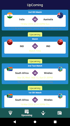 🏆 Follow Live Cricket Score of all tours & leagues including Women's Asia cup, ICC Men's T20 World Cup, Indian Premier Leage 2023 (IPL2023), Big Bash League (BBL) with CricMatch. Predominantly, we cover all ICC tournaments and tours. However, we also cover all domestic leagues like IPL, BPL, PSL, Legends League Cricket, Abu Dhabi T10 league, Super Smash, T20 Blast, County Cricket,Super 50 Cup and a lot more.