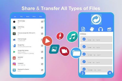 - Transfer share files, share videos, share app with multiple devices