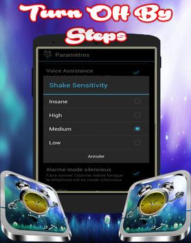 You can even have the snooze duration decrease in time after every snooze and set a maximum number of snoozes Change the sensitivity of the step counter