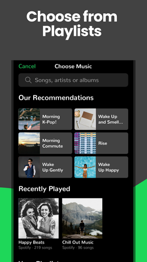 Choose which Songs, Playlists, Artists, or Albums you want to wake up every morning.