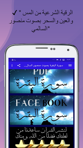 ✨ Surat Al-Baqara with Mansour Al-Salmi's voice without a net mp3 includes many icons with wonderful and beautiful backgrounds to serve the user simply and without the slightest complication, as Surat Al-Baqara was designed with Mansour Al-Salmi's voice without a net mp3 to suit you to use all family members without exception and because of this surah of great merit in cleaning the house From envy, magic and the eye, it is also worth noting that some icons have been beautifully created for the complete legal ruqyah in the voice of Mansour Al Salmi, as this application is distinguished with the following: -