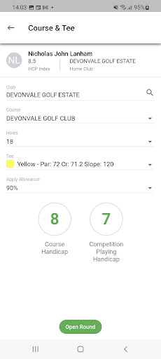 - Calculate Course- and Playing Handicaps for themselves and others