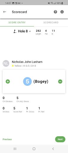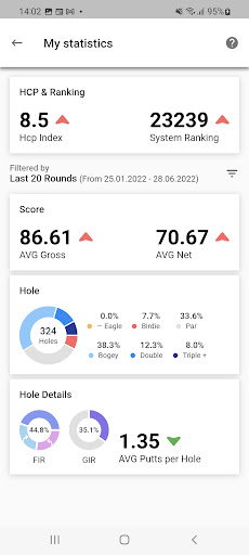 - View course stats, such as the number of birdies, pars and bogeys they have recorded