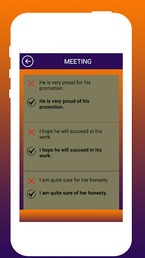Install this app on your phone open it you will see, they have different categories (General, Interview, Meeting, writing Vowels etc.) select the one you are facing a problem, it will show both wrong and right on your mobile screen look at them and memorize it. You can bookmark your favorite one and it also pronounces it by taping on speaking icon. Enjoy our app and give 5 stars and Review to this app.
