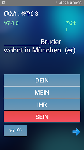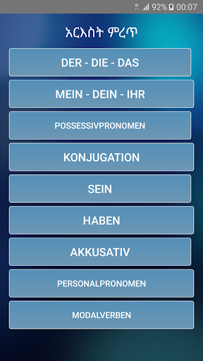 የኣማርኛና ጀርመንኛ ፈተና German Amharic(Deutsch Amharisch) Test Behandelte Themen : Der, Die Das Mein, Dein, Ihr Possessivpronomen Konjugation Sein Haben Akkusativ Personalpronomen Modalverben