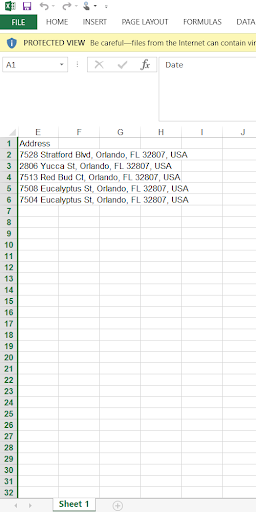 Note: Column E contains the address, disregard columns A-D