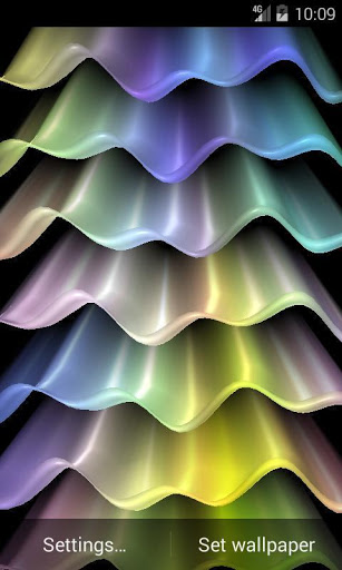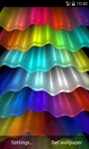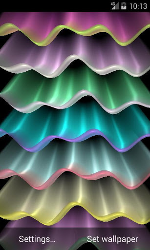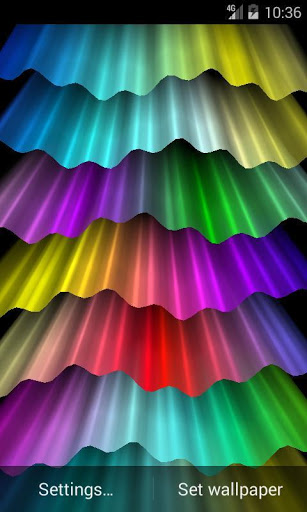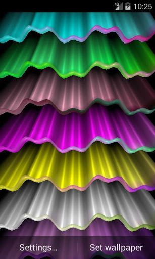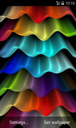 Abstract live wallpaper displays colorful waves with 3d parallax effect. Your imagination can turn the live wallpaper in the light wave, and colorful rainbow, and porcupine quills, and the northern lights.