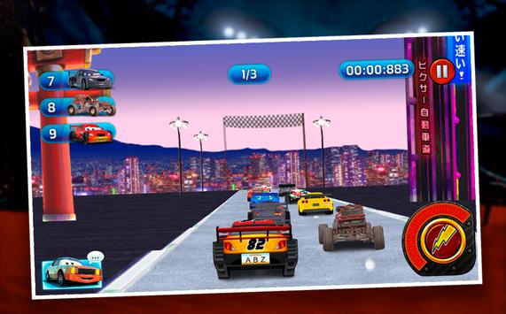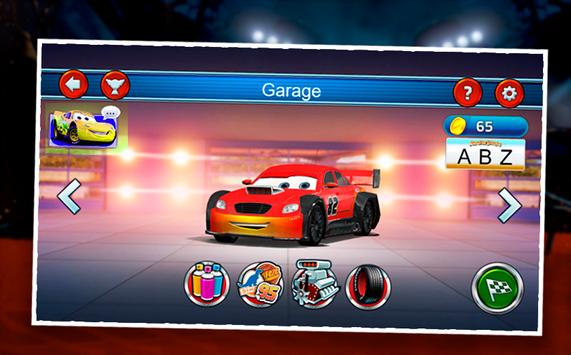 In this game, you will set your 3-letter name and take control of a white race car. After the first tutorial race, you can then edit your car from the looks, colors, and modifications. Earn money as you race and upgrade your car little by little. Avoid obstacles, collect turbo boosts, and beat Lightning McQueen and Francesco Bernoulli on a fair and clean race! Have fun racing!