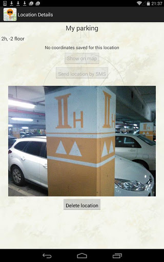 - If GPS is not available (for example, in underground parking), you can capture and save your location picture;