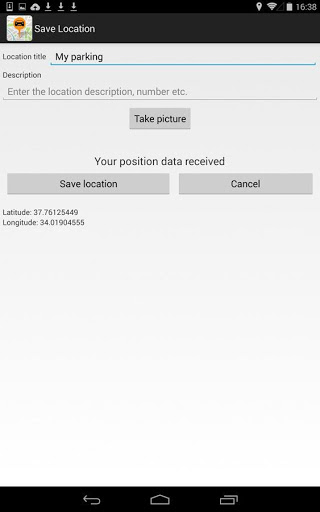 This app doesn’t collect and send any data! All details you save – location GPS, notes, photo – saved on your device and not transferred anywhere!