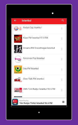 The home screen and the interface of this Turkish radio app is very cool, and the most important thing is it is very easy to use. As a user, you don’t have to look for radio frequencies like with a radio for free. Just touch the name of your favorite radio Turkish.