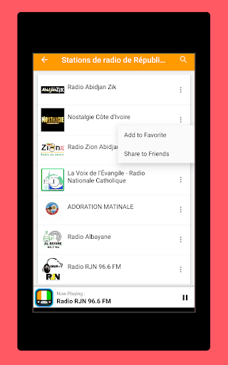 The Start screen and the interface of this application online radio stations of Ivory Coast is elegant, and the most important thing is that it is very easy to use. As a user, you don't have to look for normal radio Frequencies. Just touch the name of your favorite Ivory Coast radio and start listening Live.