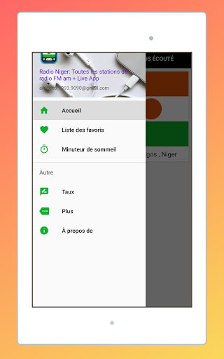 The Start screen and the interface of this application online radio stations of Niger is elegant, and the most important thing is that it is very easy to use. As a user, you don't have to look for normal radio Frequencies. Just touch the name of your favorite Niger radio and start listening live.