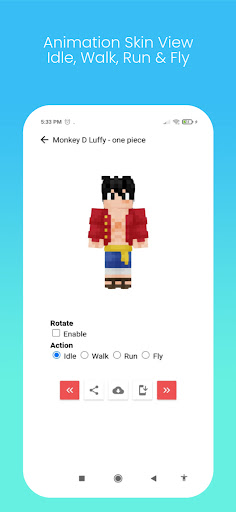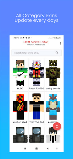 All Minecraft skins are shown and rotated in 3D. Within just 2 taps you can load them into Minecraft and play it. Isn't that awesome?