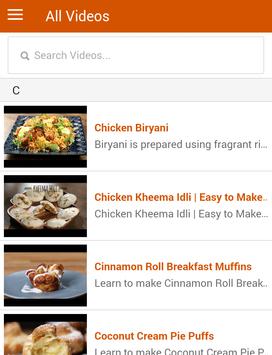 You can view the whole list of videos alphabetically sorted for the best user experience. Or You can select your Favorite Videos which would provide you easy access to them whenever you require. Or you could just check out the home page for the recently updated 10 cooking videos.