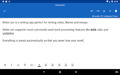 Writer pro is a writing application perfect for writing notes, diaries, poems and essays on your phone or tablet.
