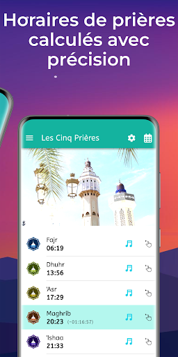 Consultez les horaires de prières calculés avec précision selon les méthodes que vous aurez choisies et votre position géographique.