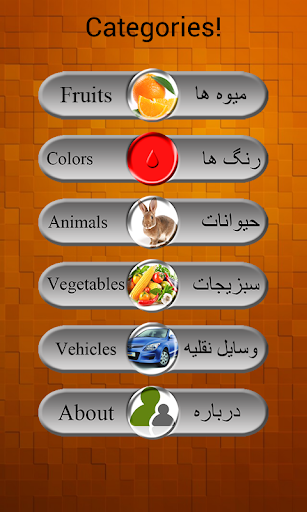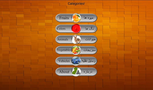 This application is for educational purpose for those who wants to learn withe image and sound.This app can help you to learn quickly the Vocabularies, pronunciation, Dari/Farsi and English, with the pictures of every object placed inside of this app in two languages Dari/Farsi and English.It has test a testing functionality to take an exam after finishing every level of this game.This method will help the user to learn them in better way.