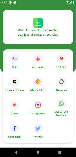 is an Android All Social Media Video and Image Downloader App. You can Save SnackVideo, ShareChat, Roposo, Likee, Whatsapp, WA Business, TikTok, Twitter, and Instagram Videos and Images, Reel with All In One Status Saver. You can Download SnackVideo, Roposo, ShareChat, and Likee Video Without Watermark. You can easily share them from the App.