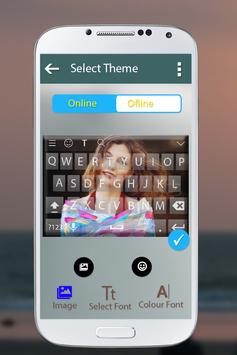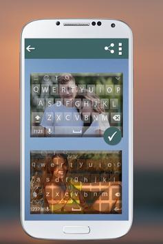 This application provides different theme of keyboard. You select any theme and set your photo. Select your photo from camera and gallery.