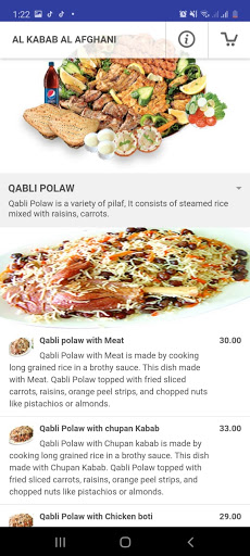 Order Online for Takeaway / Delivery. Here at Al Kabab Al Afghani - dubai you'll experience delicious Kebab cuisine. Try our mouth-watering dishes, carefully prepared with fresh ingredients! At Al Kabab Al Afghani, our recipe for success is simple – Great food & care makes customers return every time