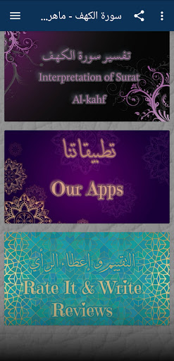 Now we come to the features of the application (Surat Al-Kahf - Ali Al-Hudhaifi - without internet)