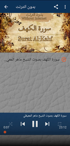 Try the application (Surat Al-Kahf - Ali Al-Hudhaifi - without Internet) and download it now and listen to the words of God so that we may have an intercessor on the day of the hereafter