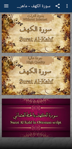 The application contains Surat Al-Kahf inside the application (Surat Al-Kahf - Ali Al-Hudhaifi - without internet)