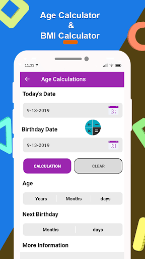 • The age calculator has a fast way to calculate your age with a signal click.