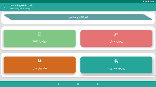 Learning English is very easy. This is the best app to learn to speak English in your own Urdu language. Learn Speaking English. Learn English Speaking in Urdu. English Vocabulary Urdu. Translation of English to Urdu sentences with conversation.