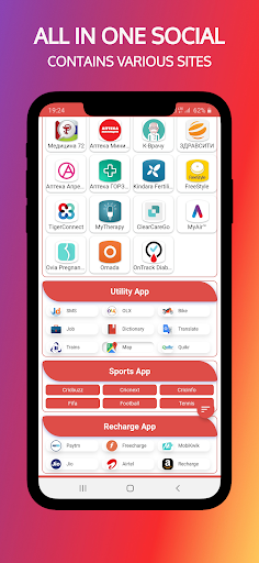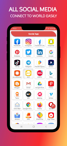 📍 — all social media apps in one app is a multi social app. Works as a social media browser for android for all apps in one folder. An app to make friends and save space on your phone, so you don't have to download most chatting apps on your mobile phone. In the app, you will also find a tab dedicated to games and another tab for local news. The All Social Media Network App "all social media and social network in one app" offers shows you great marketing apps. All social media apps in one app is a social browser that helps you quickly access all apps in one app, getapps now like IG, FB, WA and entertainment applications such as Insta, snap and u tube. Now you can access all apps download and get more apps in one app and enjoy with all my apps.