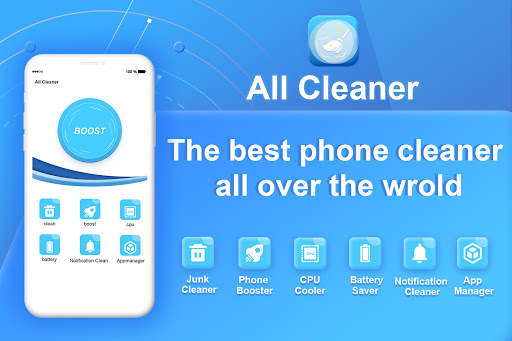 All Cleaner is an android mobile phone cache cleaner, speed booster and memory booster. Our All Cleaner would like to keep your phone clean, fast, safe, and also save battery! It can boost your devices for better performance with simply one tap.