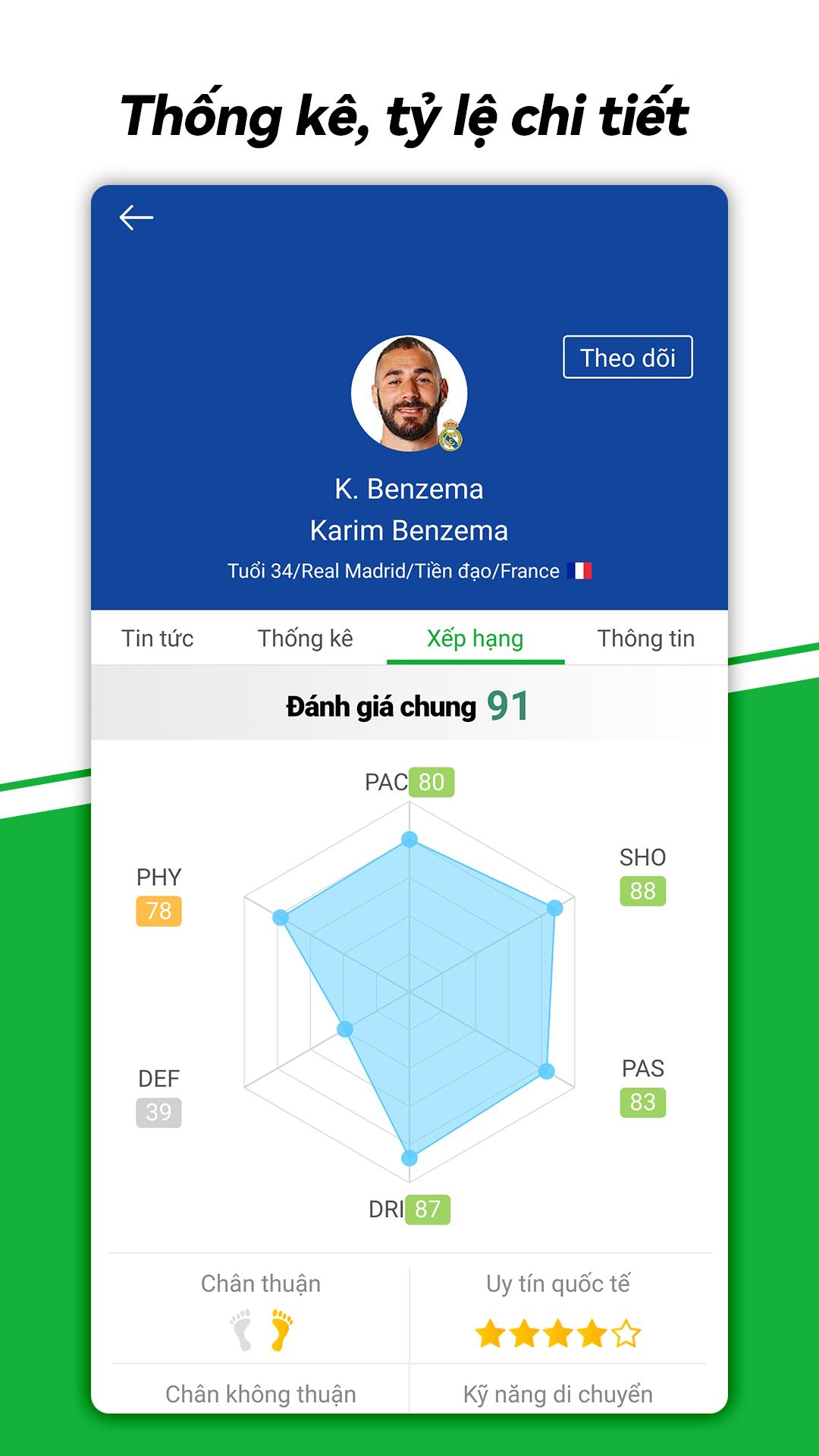 Nhận được thông tin các bảng, lịch thi đấu, kết quả, đội hình, hồ sơ cầu thủ và thống kê hiệu suất trên ứng dụng "All Football".