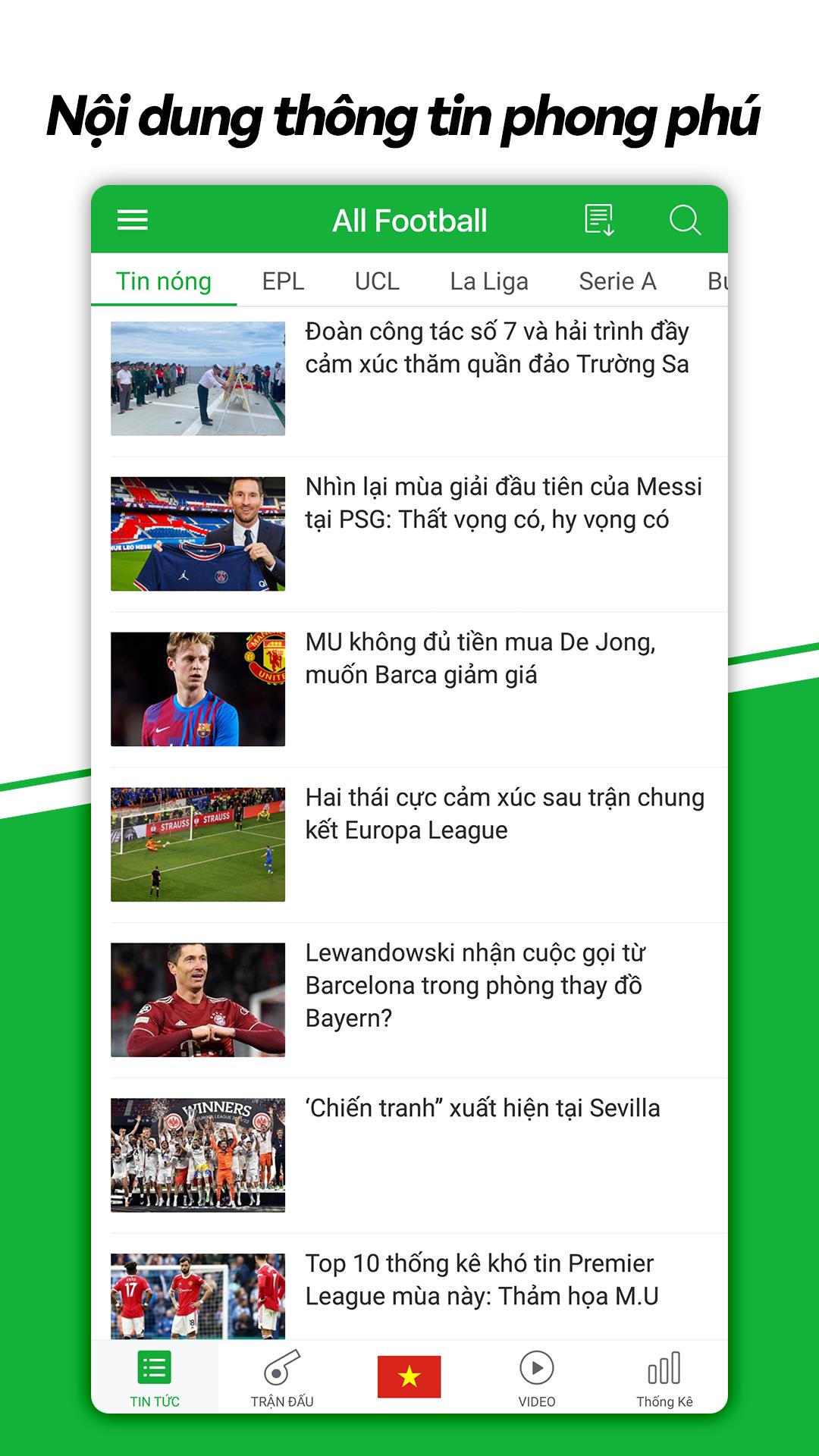 Dưới đây là mô tả về các Tính năng chính của "All Football".