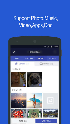 Photos, videos, music, installed apps and any other files with unlimited file size.