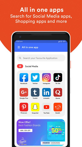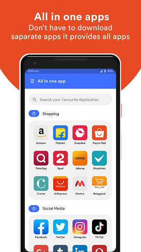 With our super fast and light All in one App you have to browse all the Shopping, news, sports, food, entertainment, health, Social Network in a simple click.