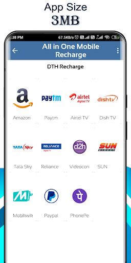 Amazon prime,Mobikwik Reliance Digital Tv, My Tata Sky Others Recharge also available on it.