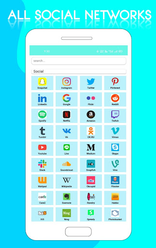 🔍In this application you can find any social media network very easily because of the the search feature. There is a search feature provided in this application which is really helpful you can find the social media platform you want to use by searching its name on the top. Just click on the the search button in the top and enter the social media platform name and press the search button, that's it you will find your social media icon you want to use just click on it and use it