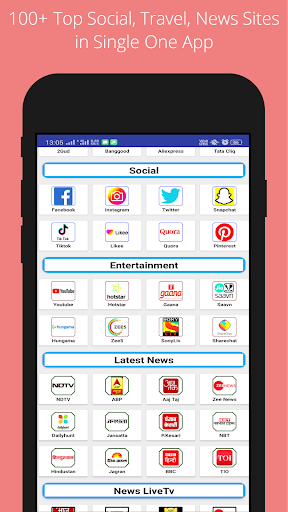 our Online Shopping App super fast and lightweight App. you can browse all the Shopping Sites in one app. 100 Top shopping sites included in this app.